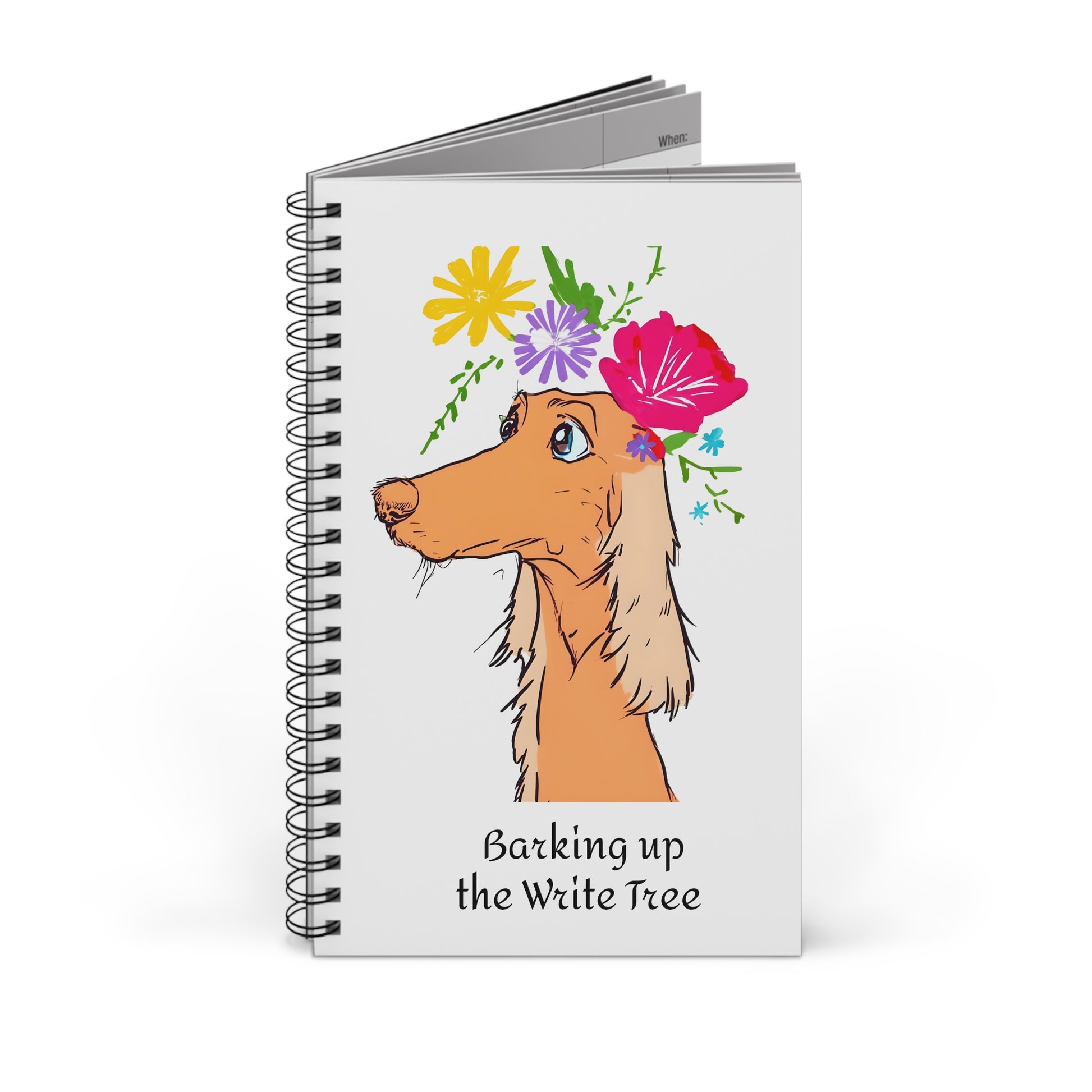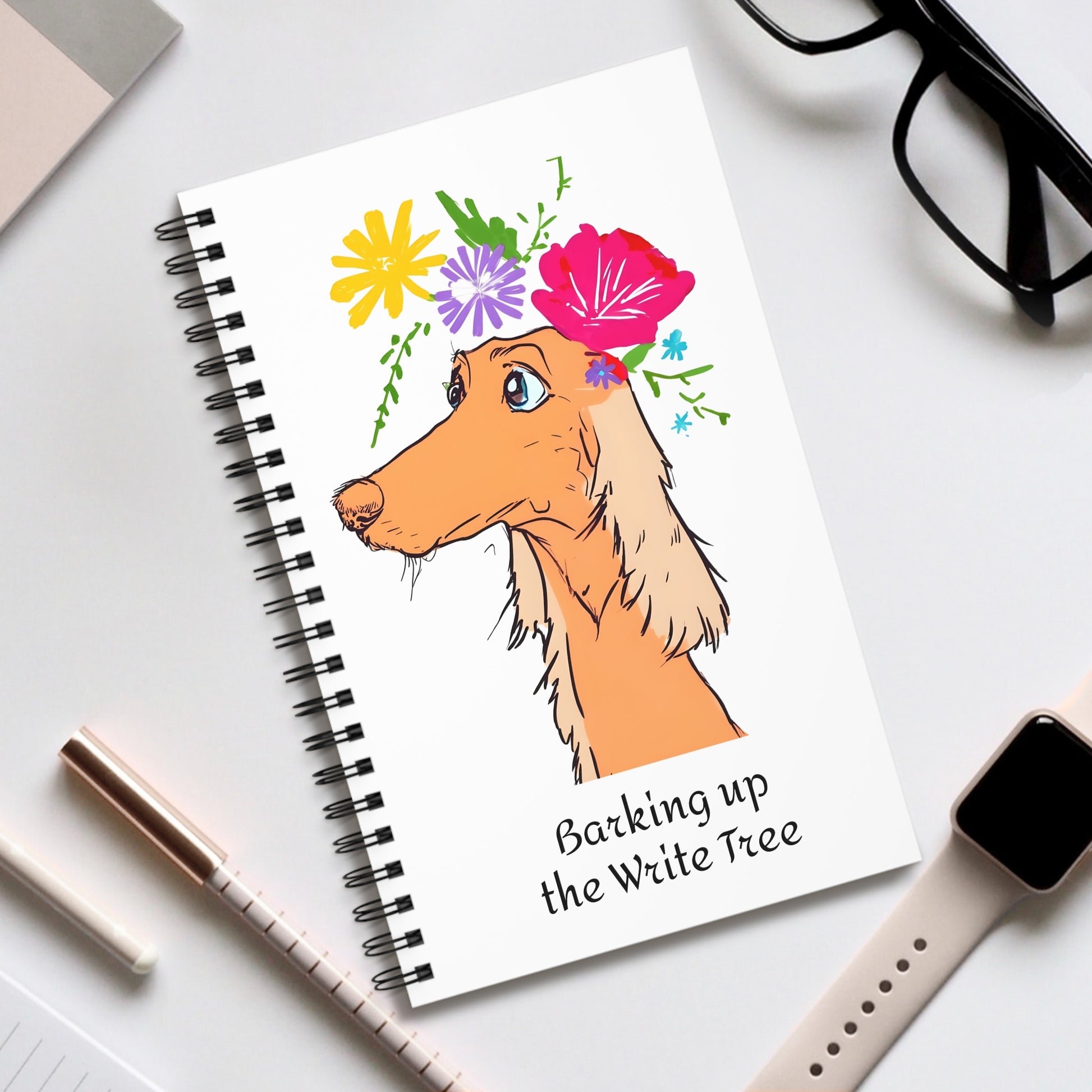 Barking Up the Write Tree Colourful Cartoon Dog Notepad Fun Spiral-Bound Notepad with Lined, Dot, or Journal Paper Options