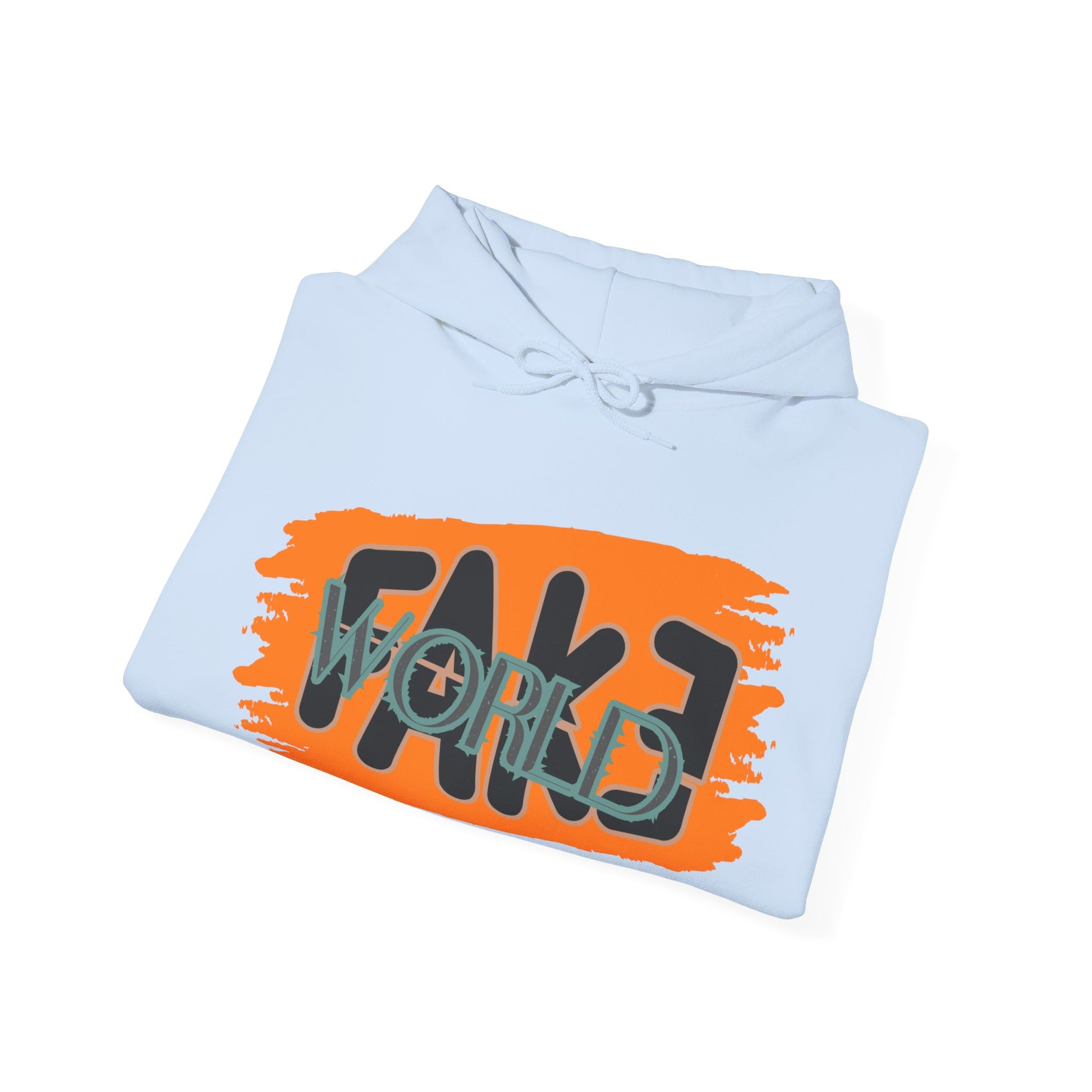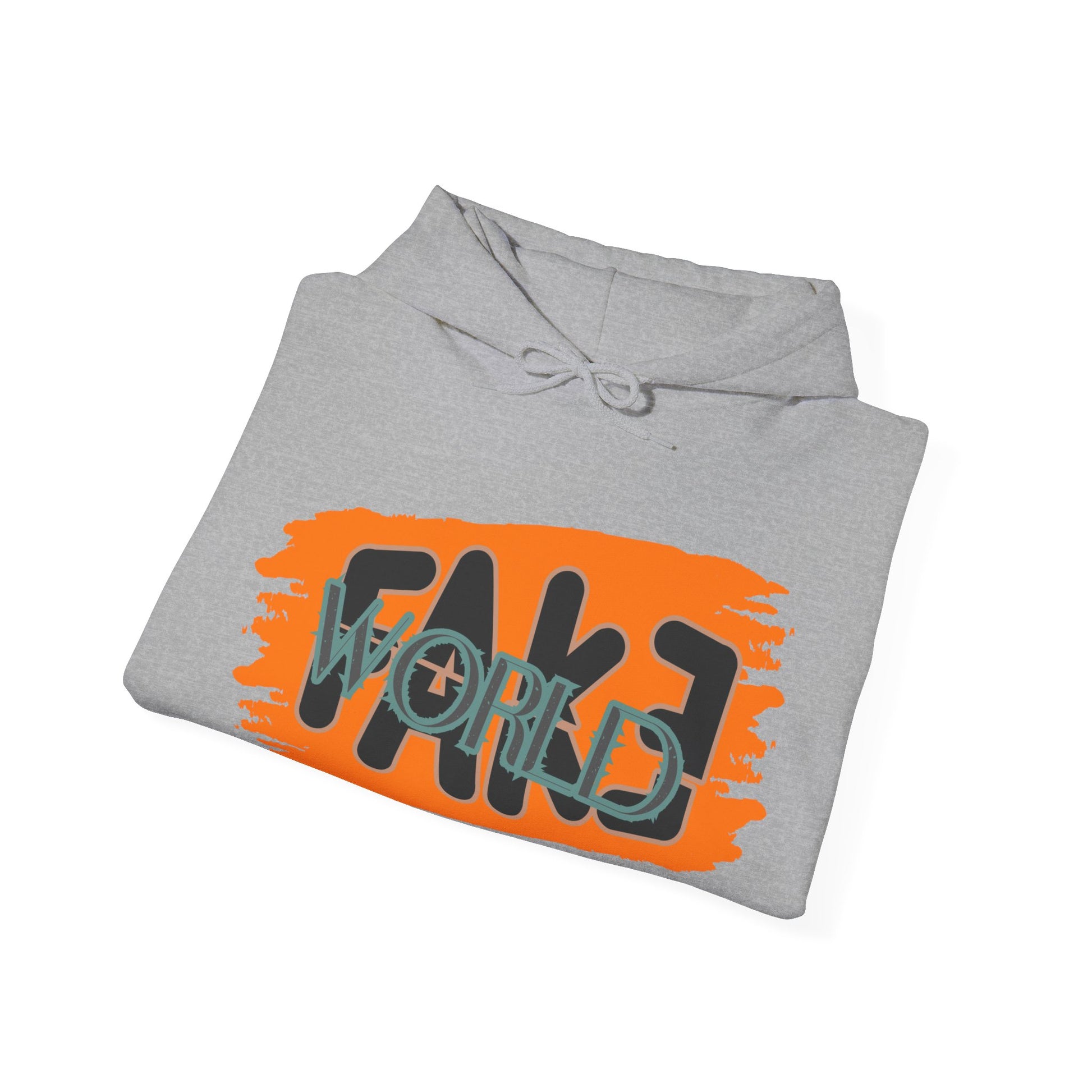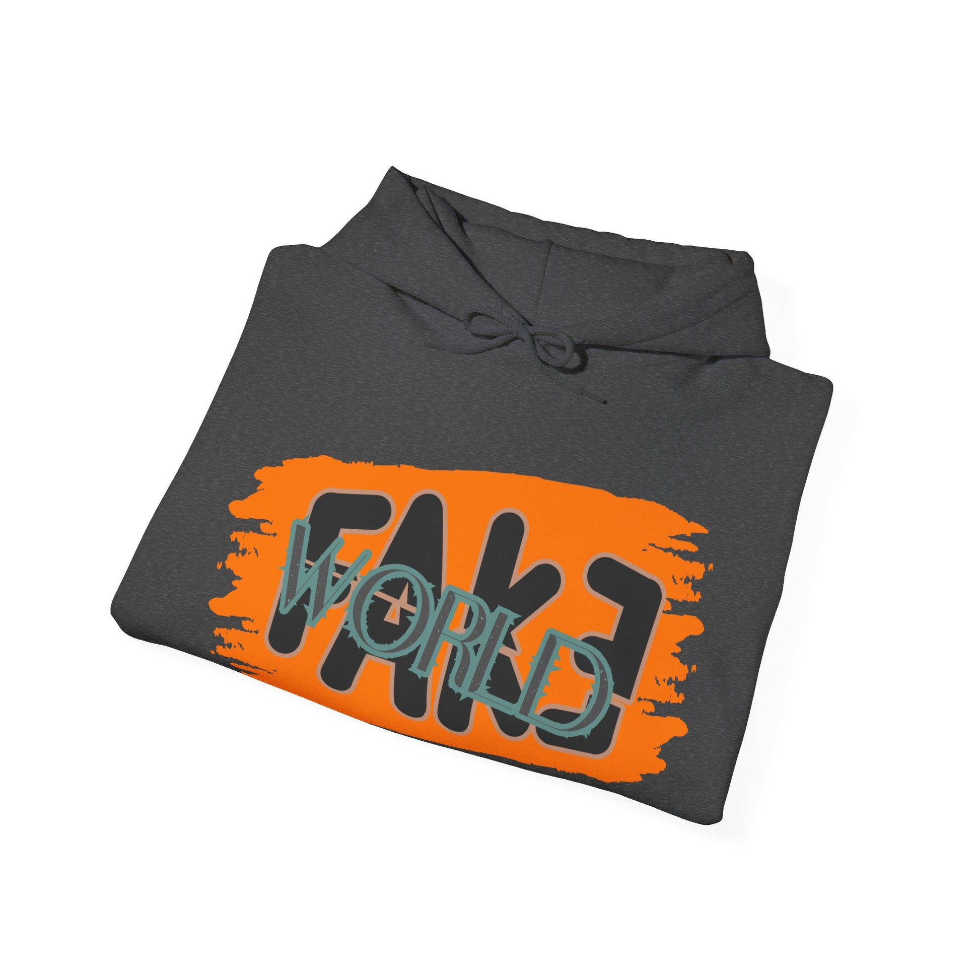 Fake World Graphic Hoodie, Unisex Sweatshirt, Casual Streetwear, Perfect Gift for Friends, Trendy Layering Piece
