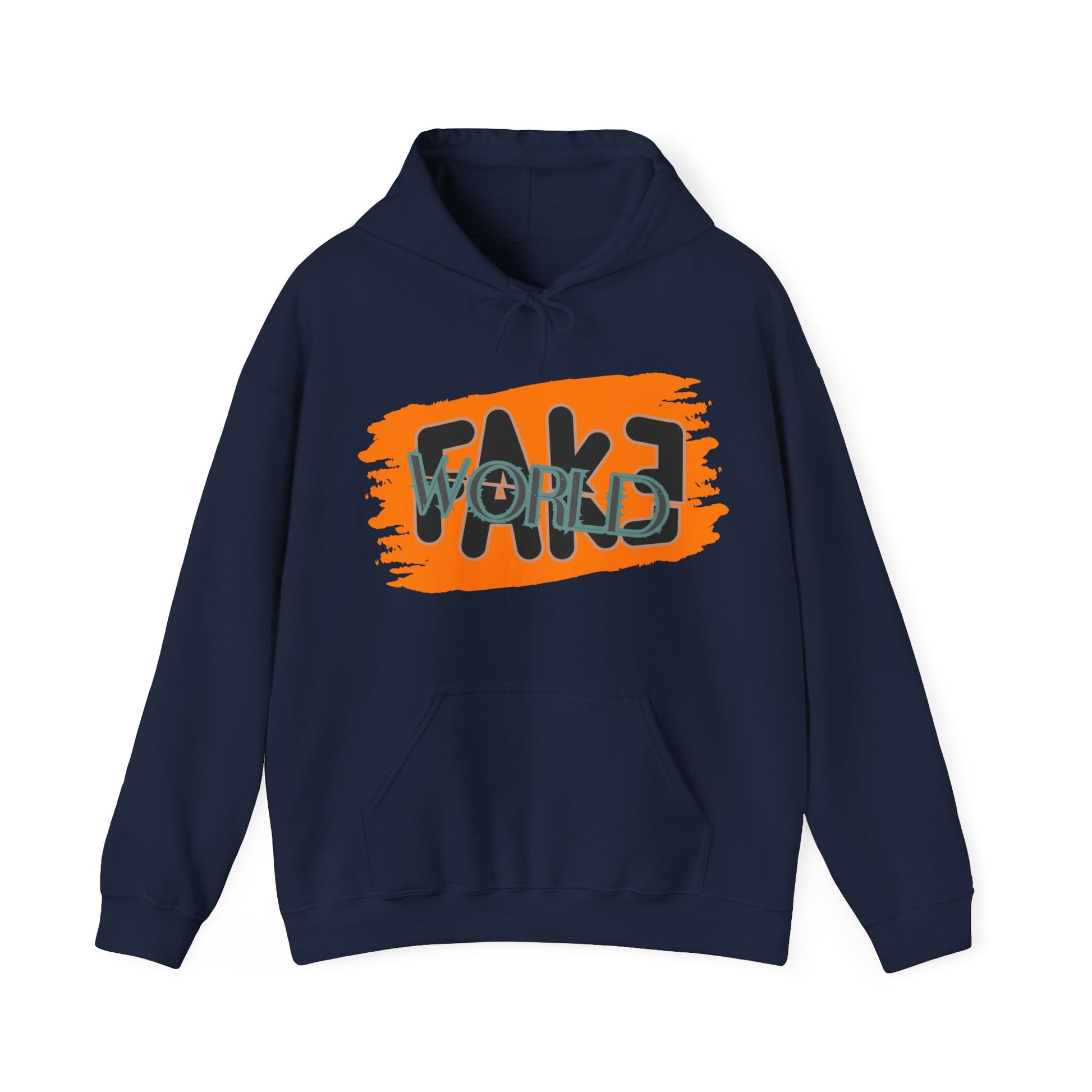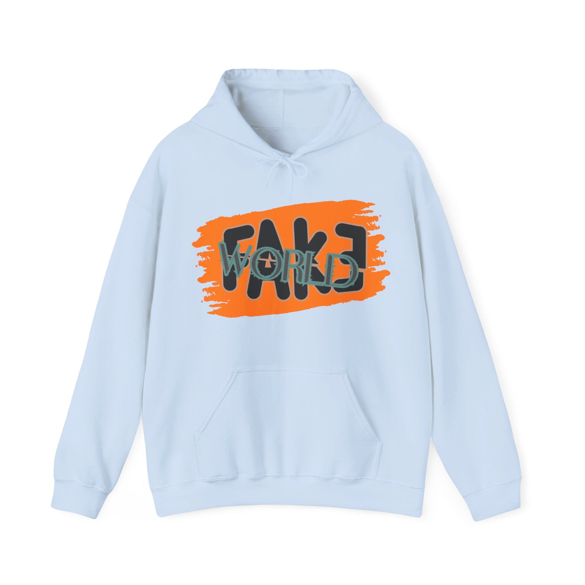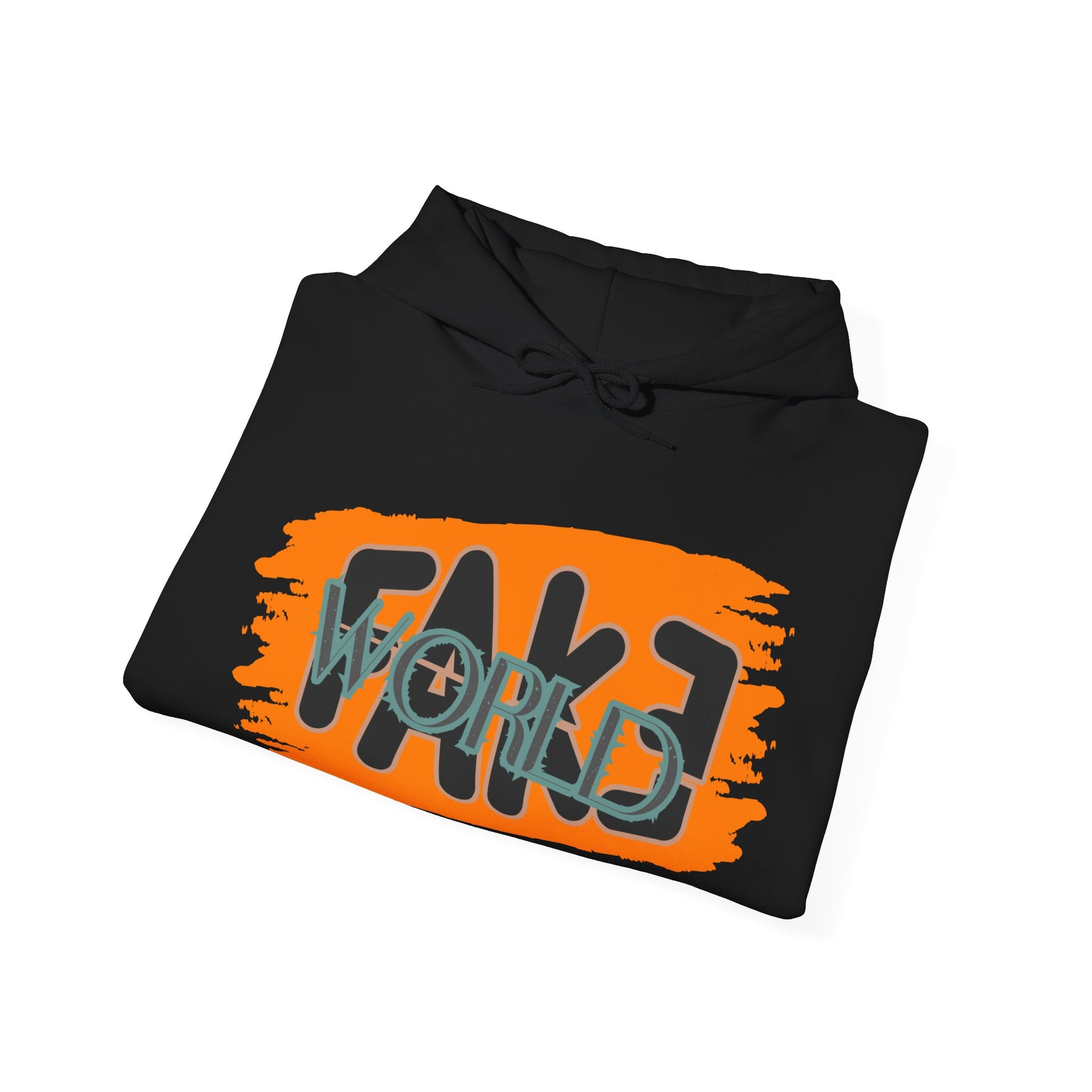 Fake World Graphic Hoodie, Unisex Sweatshirt, Casual Streetwear, Perfect Gift for Friends, Trendy Layering Piece