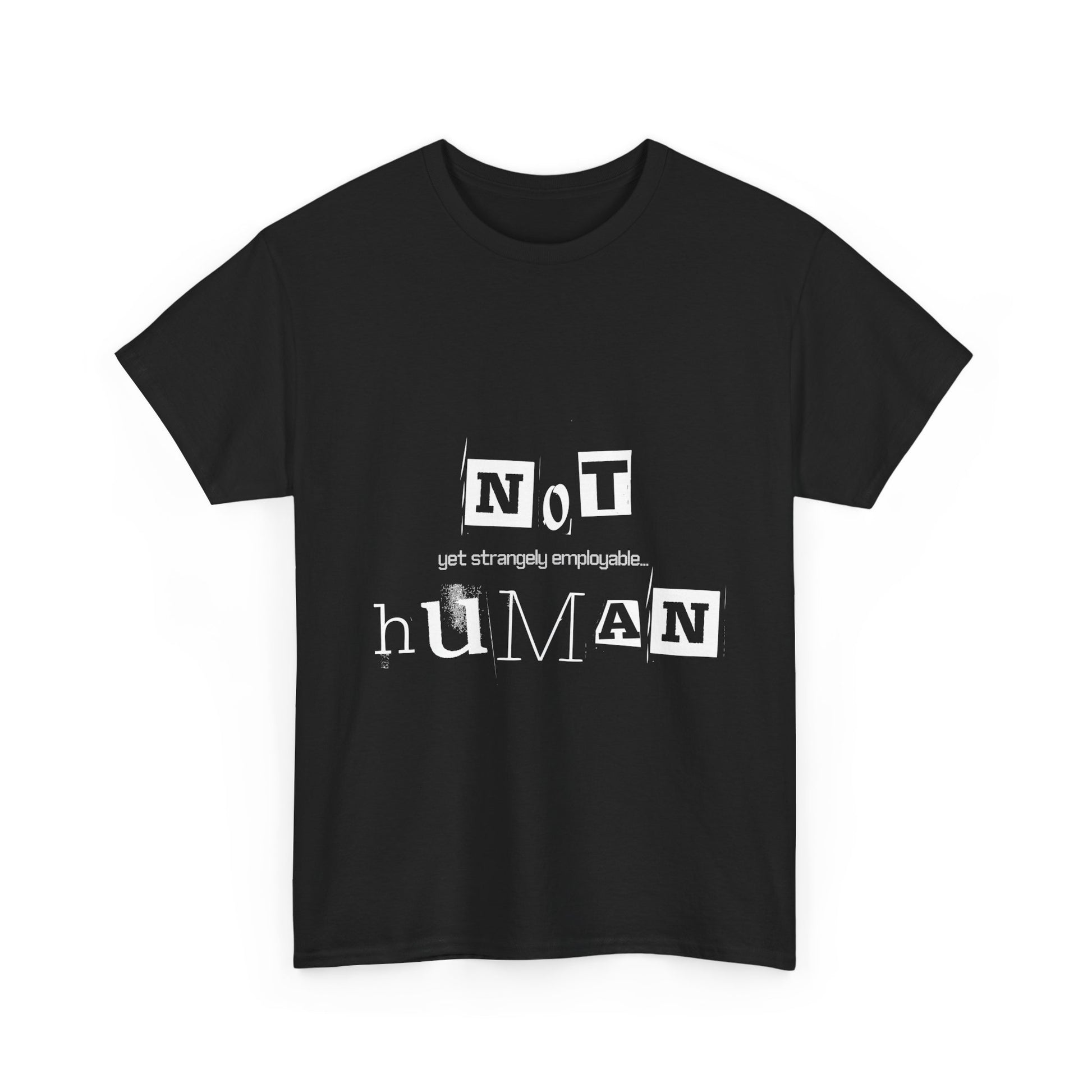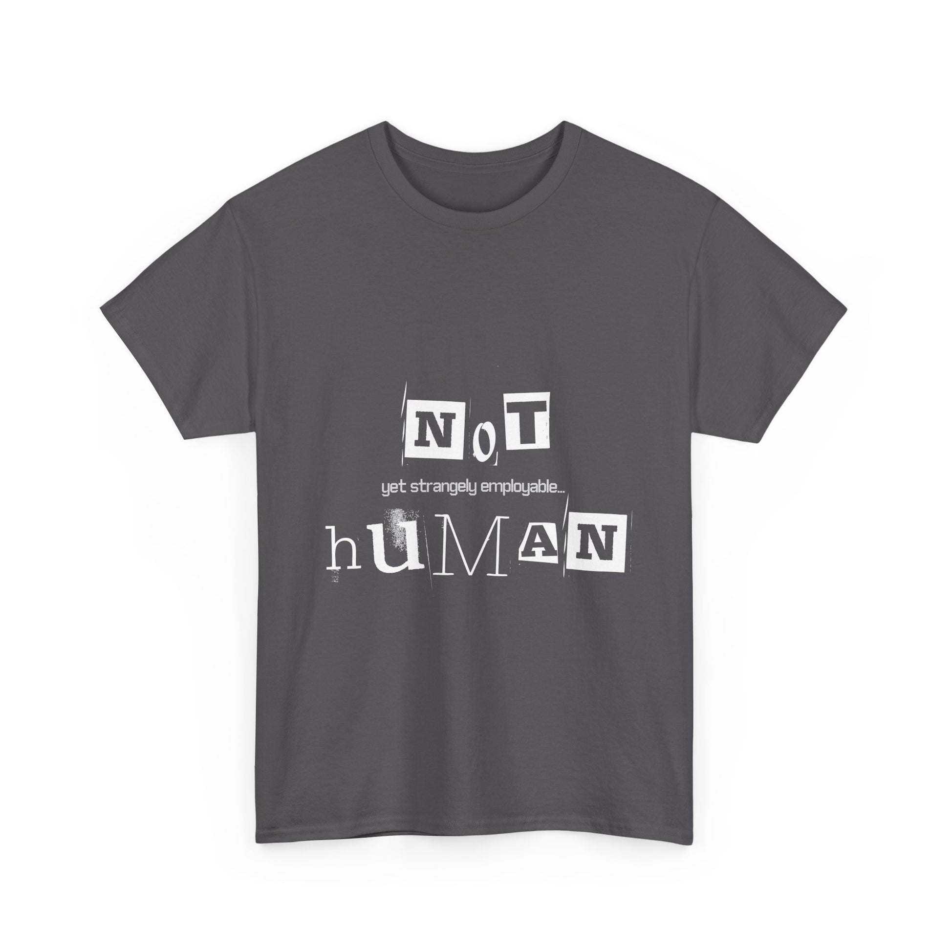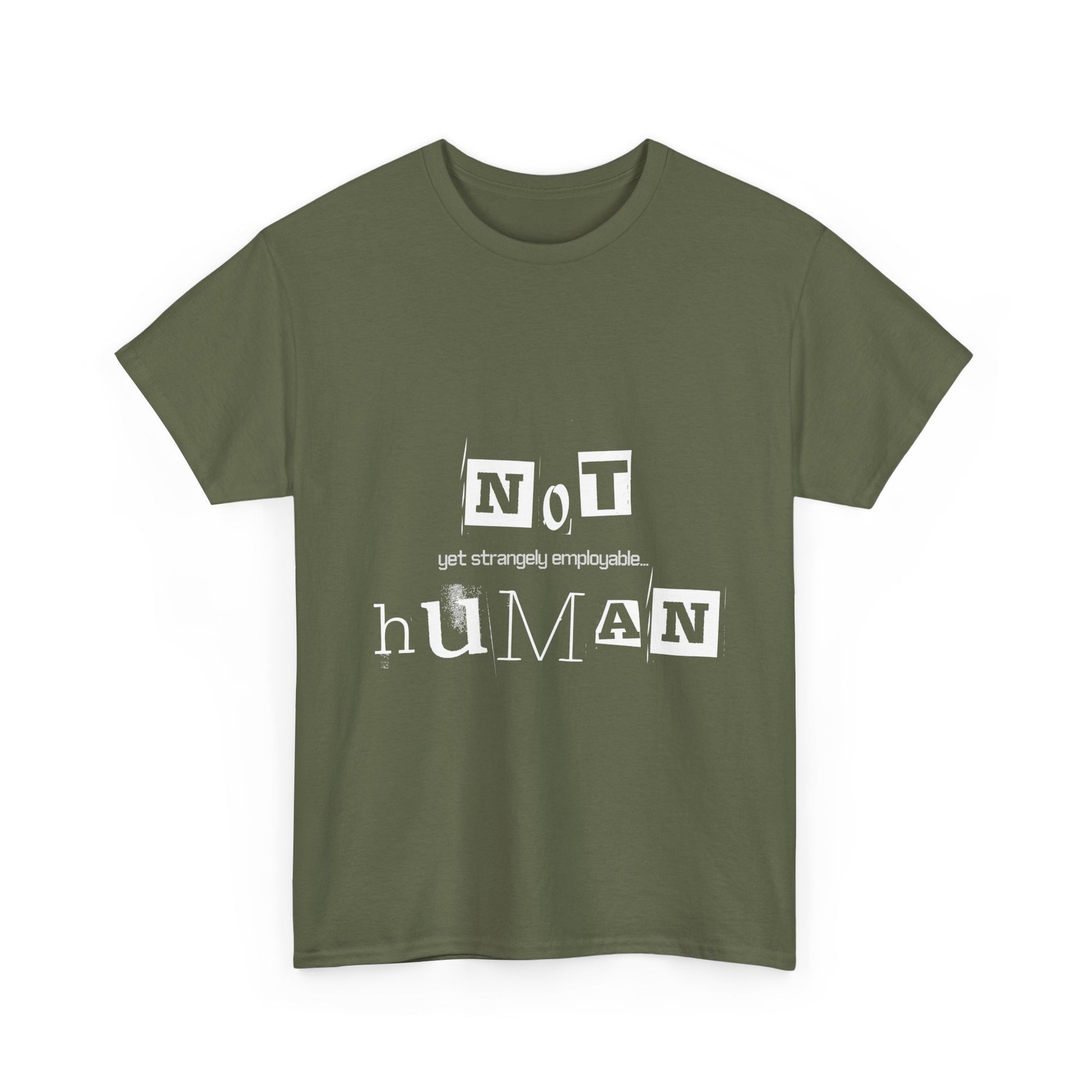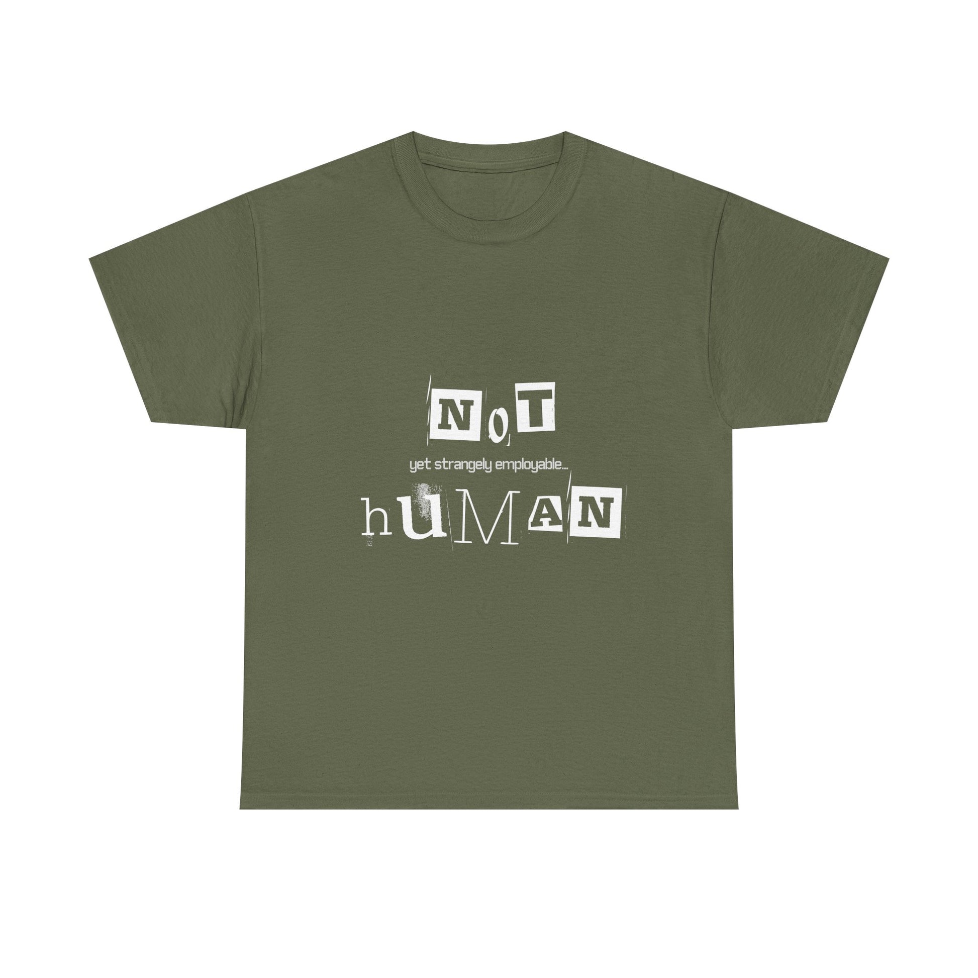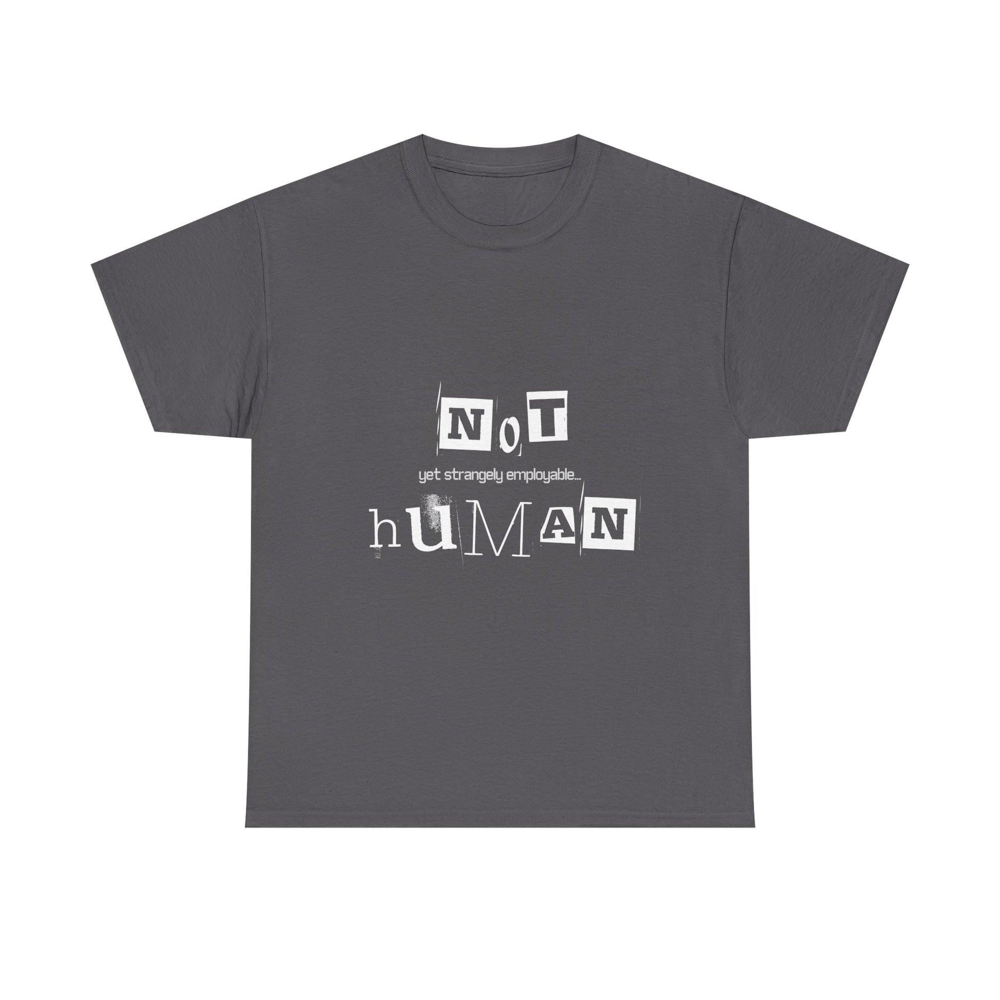 Unisex Heavy Cotton Tee - "Not Human Yet Strangely Employable" T-Shirt, Funny Graphic Tee, Gift for Introverts, Quirky Humor Shirt, Casual